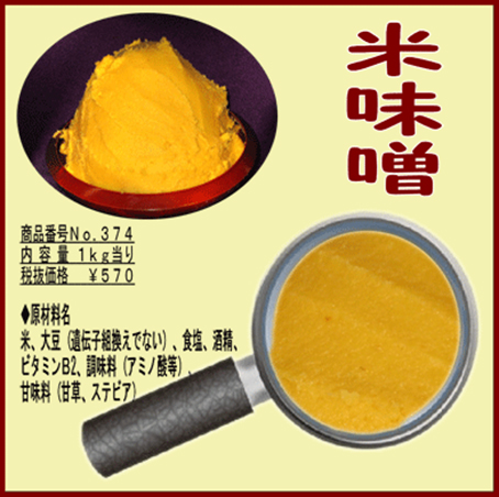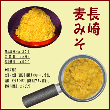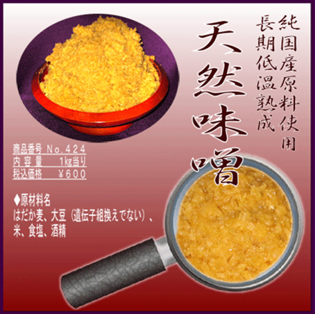 麦麹を多く使用し、淡黄色で、コクと甘味が程よくマッチした地元に合った味噌です。 |