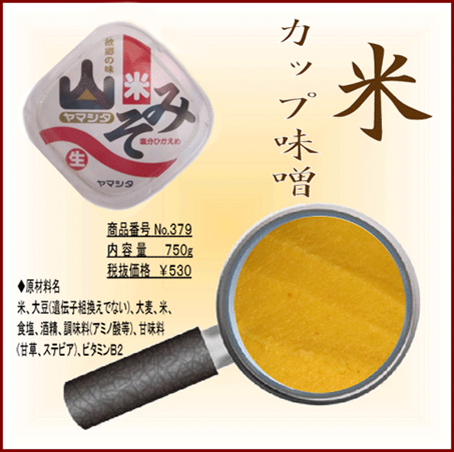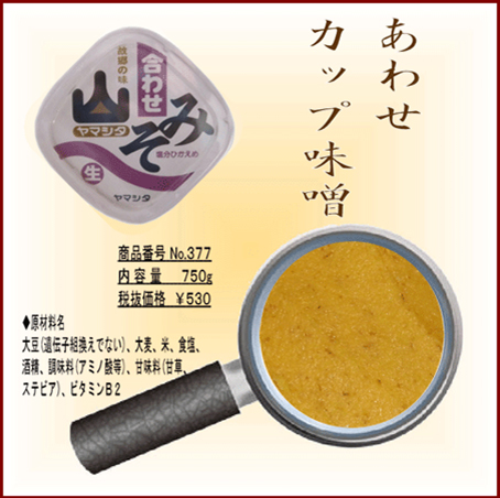 米麹を多く使用し淡黄色で、さっぱりした風味の味噌です。味噌汁をはじめ様々な味噌料理に適しています。 |